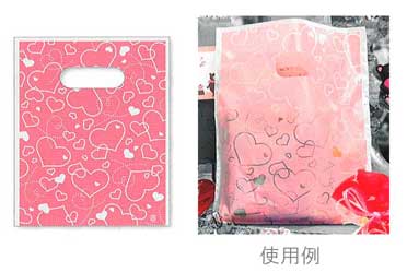 持ち手部分が抜きになったカラーポリ袋。 材質:HDPE